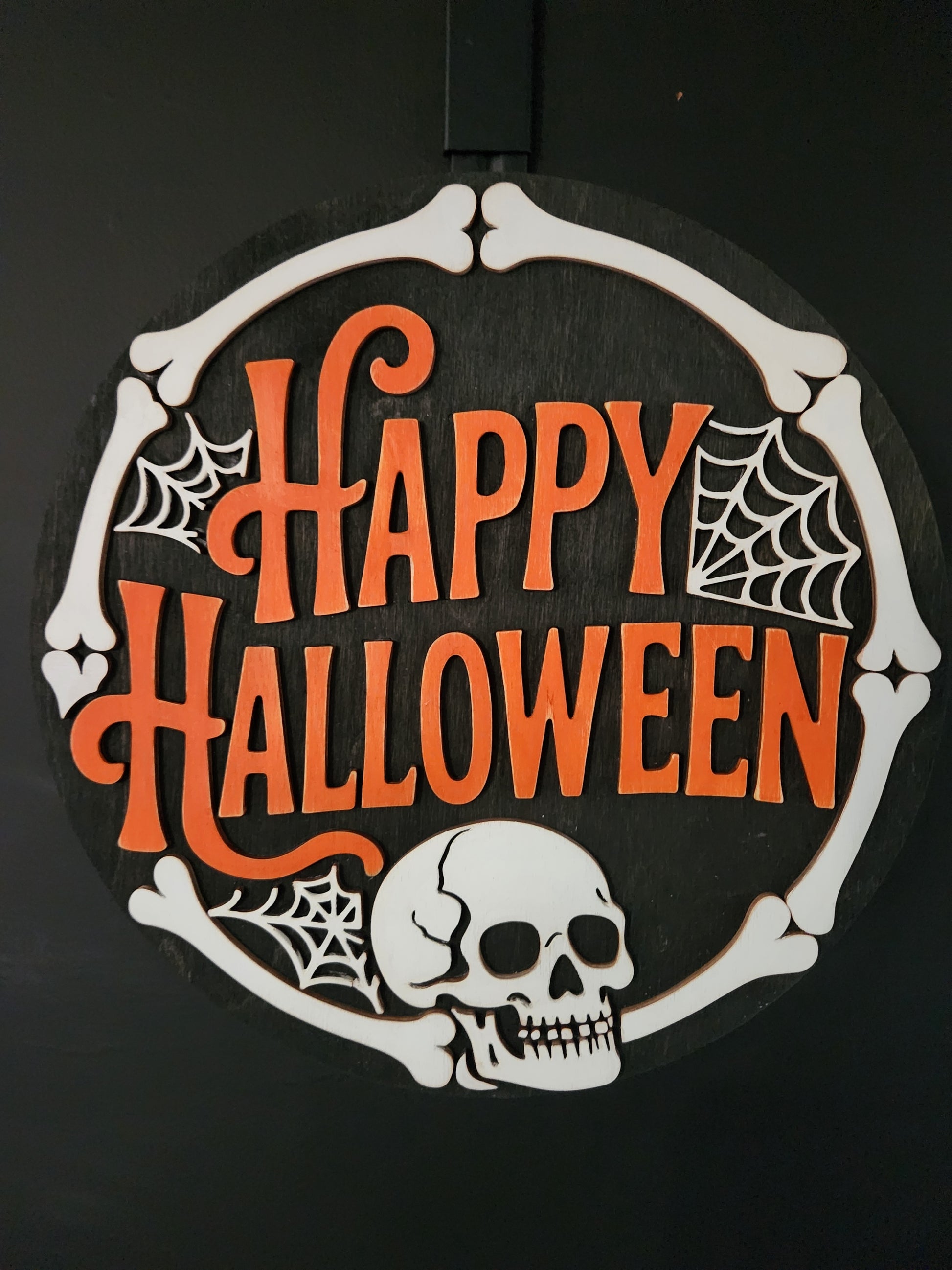 Celebrate the spooky season with this 12” round Skull and Bones door sign, handcrafted to add a playful Halloween vibe to your home. Perfect for hanging on your door or wall, it brings a fun and festive touch that welcomes guests with a cheeky grin. Durable and charming, this unique decoration is sure to be a favorite every October!